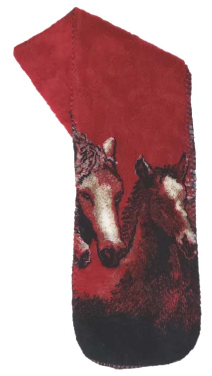 Our Crimson Red Horse Scarf is made of a super soft ultra plush fleece!